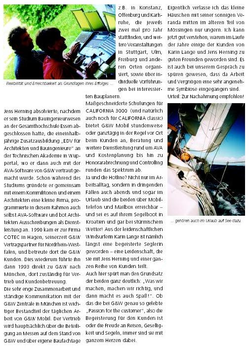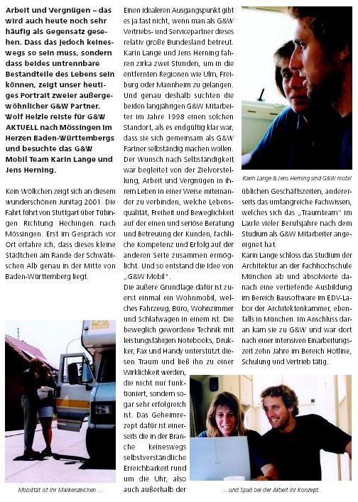 G&W Partner stellen sich vor -Wolf Helzle schreibt in G&W Aktuell: